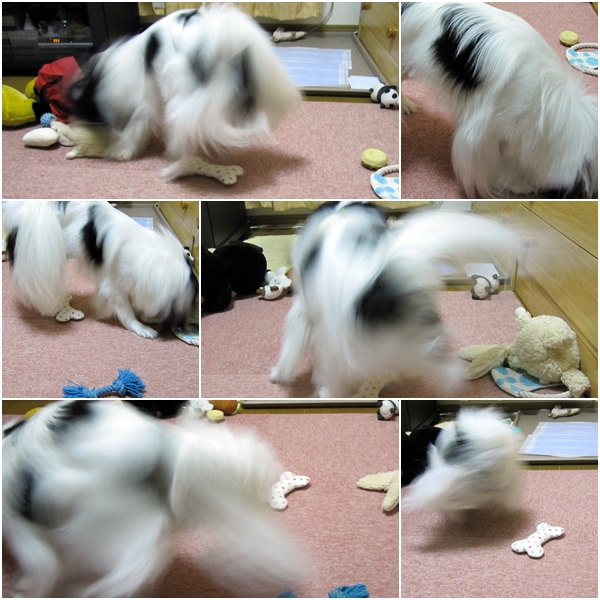 音の出るボールやおもちゃを意気揚々と咥えピーピーうるさい(笑)