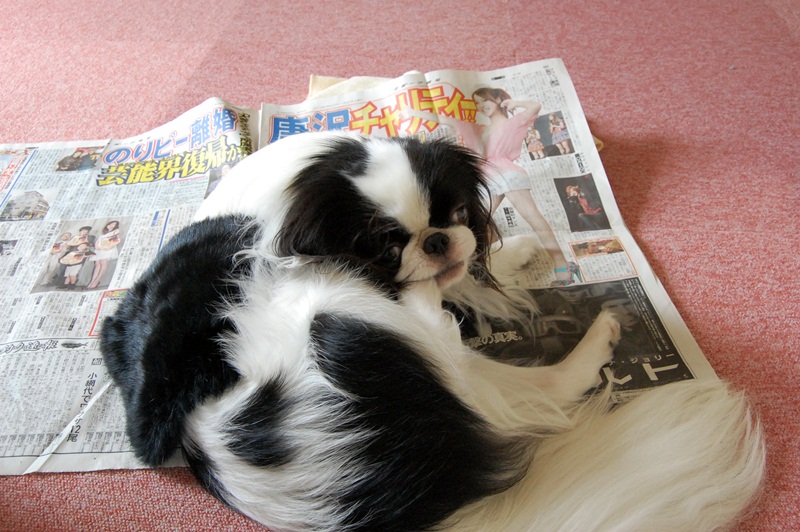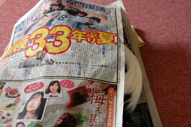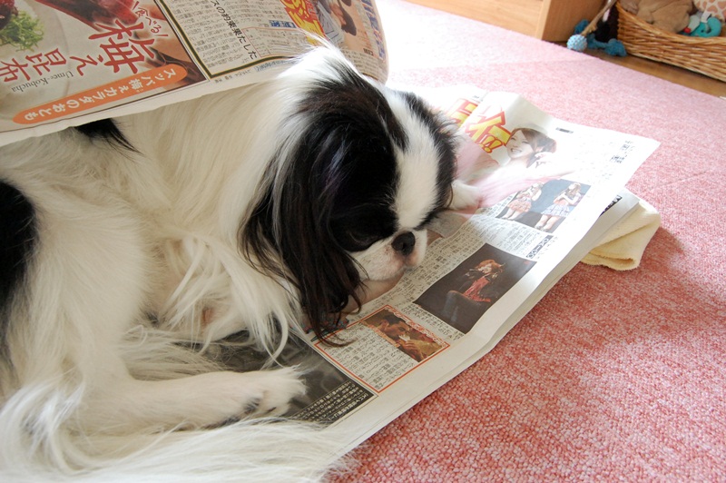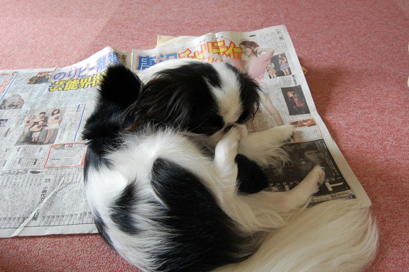 今の時期新聞の上で寝るのは暑いのに。