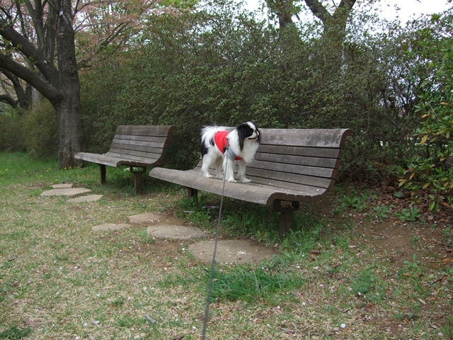 公園を出てすぐのベンチでまた狆の開きポーズなんぞ^^;